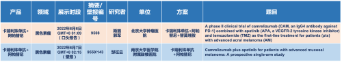 在黑色素瘤领域,利来w66国际医药的卡瑞利珠单抗联合阿帕替尼(“双艾”组合)在2022 ASCO共入选1项口头报告和1项壁报展示。