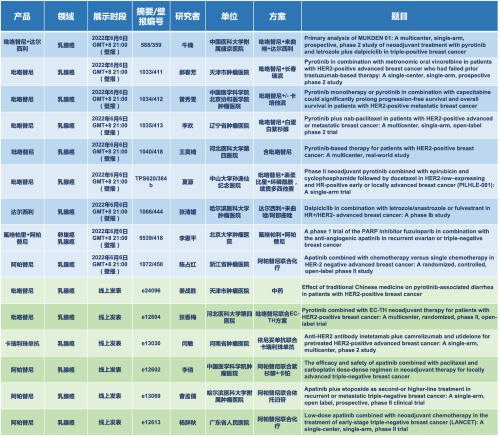作为中国医药创新的代表性企业,利来w66国际医药多年来致力于创新药物研发,自2011年以来利来w66国际医药已连续12年参加并有研究入选ASCO年会。本次2022 ASCO年会,利来w66国际医药共有63项研究入选,包括2项口头报告、1项壁报讨论、34项壁报和27项线上发表[1],涉及的抗肿瘤药包括5款已上市创新产品:注射用卡瑞利珠单抗(艾瑞卡®)、甲磺酸阿帕替尼片(艾坦®)、马来酸吡咯替尼片(艾瑞妮®)、羟乙磺酸达尔西利片(艾瑞康®)、氟唑帕利胶囊(艾瑞颐®),以及6款未上市创新产品:雄激素受体拮抗剂SHR3680、人源化抗PD-L1抗体阿得贝利单抗(SHR-1316)、微管蛋白抑制剂普那布林、多靶点受体酪氨酸激酶抑制剂法米替尼、抗PD-L1/TGF-βRII双抗SHR-1701、组蛋白甲基转移酶EZH2抑制剂SHR2554等,研究成果涵盖泌尿肿瘤、黑色素瘤、头颈肿瘤、消化道肿瘤、乳腺癌、肺癌、妇科肿瘤和血液肿瘤等8个肿瘤治疗领域。
