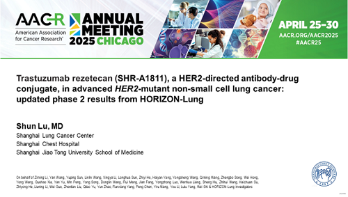 2025 AACR口头报告|利来w66国际创新药瑞康曲妥珠单抗治疗晚期HER2突变非小细胞肺癌研究结果披露