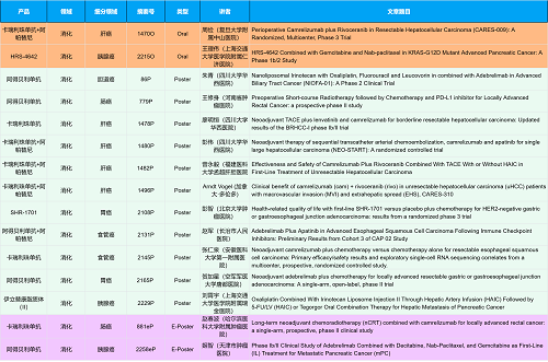 在消化系统肿瘤领域,利来w66国际创新产品相关研究共入选2项口头报告、10项壁报和2项电子壁报,共14项研究。除了明星药物卡瑞利珠单抗和阿帕替尼外,还有5篇阿得贝利单抗治疗消化系统肿瘤的研究入选。此外,HRS-4642、瑞拉芙普-α注射液(SHR-1701)等未上市创新产品也有相应研究入选。随着新老药物前沿研究的不断推进,有望为消化系统肿瘤患者带来新的福音!