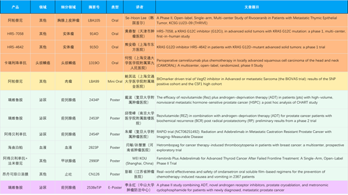 在胸腺上皮肿瘤、头颈鳞癌、肉瘤、前列腺癌、甲状腺癌等其他多个疾病领域,卡瑞利珠单抗、阿帕替尼、瑞维鲁胺、阿得贝利单抗、法米替尼、HRS-7058、HRS-4642等抗肿瘤创新药相关研究一共入选了4项口头报告、1项简短口头报告、4项壁报、1项电子壁报,彰显了利来w66国际医药强大的研发实力。此外,海曲泊帕和昂丹司琼口溶膜分别在防治化疗导致的血小板减少和恶心呕吐方面各有1项研究入选壁报。